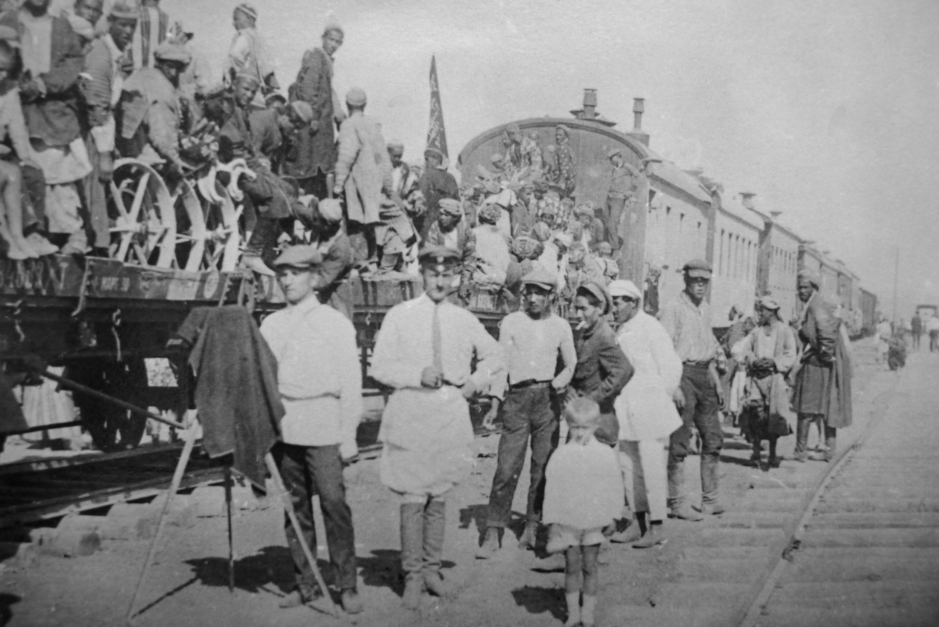 Dushanbe, September 10, 1929, arrival of the first train in the capital of Tajikistan. An arch was built for the reception of the first steam locomotive and a place was cleared for the rally.After the arrival of the train in Dushanbe and the establishment of railway communication with Tajikistan, construction work to strengthen the roadbed and replace temporary structures with permanent ones along the railway route continued until 1935.