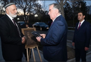 A known Tajik artist and sculptor, Sayyid Umar Masum, presented one of his works - a bronze engraving depicting President Emomali Rahmon – to the Tajik leader in Dushanbe on Monday,