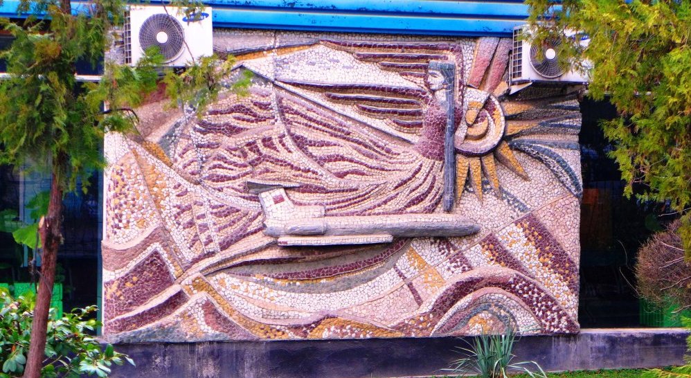 Мозаика на административном корпусе производственного объединения «Таджиктекстиль»