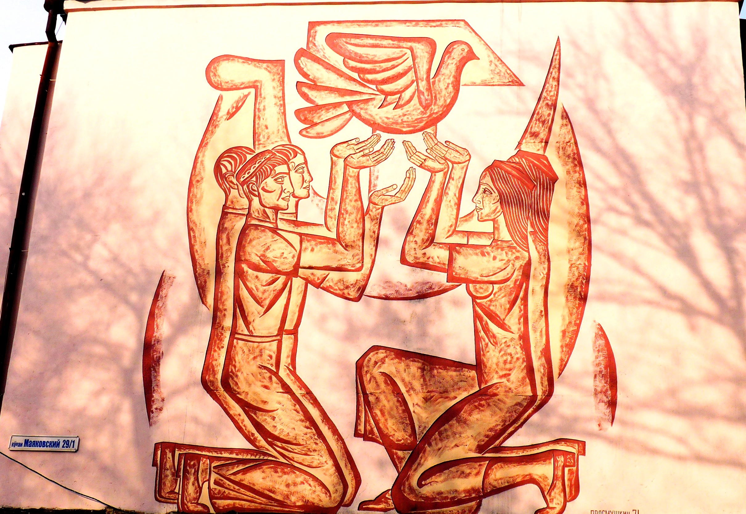 Одно из самых красивых панно в Душанбе - «Мир и любовь». Ул. Маяковского, дом № 29/1. Автор Росписи Н. Просмушкин, 1971 год