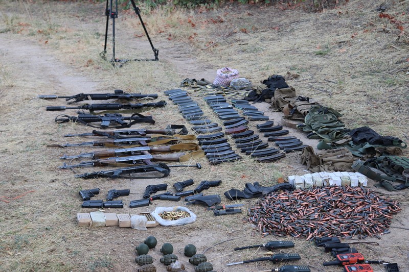 На месте происшествия и в схроне было изъято: 5 автоматов Калашникова, 2 снайперские винтовки М-16, карабин М-4, 4 пистолета, 13 ручных гранат, множество магазинов к оружию и патронов.