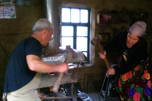 А пока Сабохат вместе с мужем Бахтиёром и сыном Шерзодом трудятся в маленькой старой кузнице, которая была построена более тридцати лет назад ее свекром Бободжоном Ахмедовым. Рабочий день семейства начинается в пять утра, когда еще прохладно и в мастерскую дует свежий ветер с улицы.