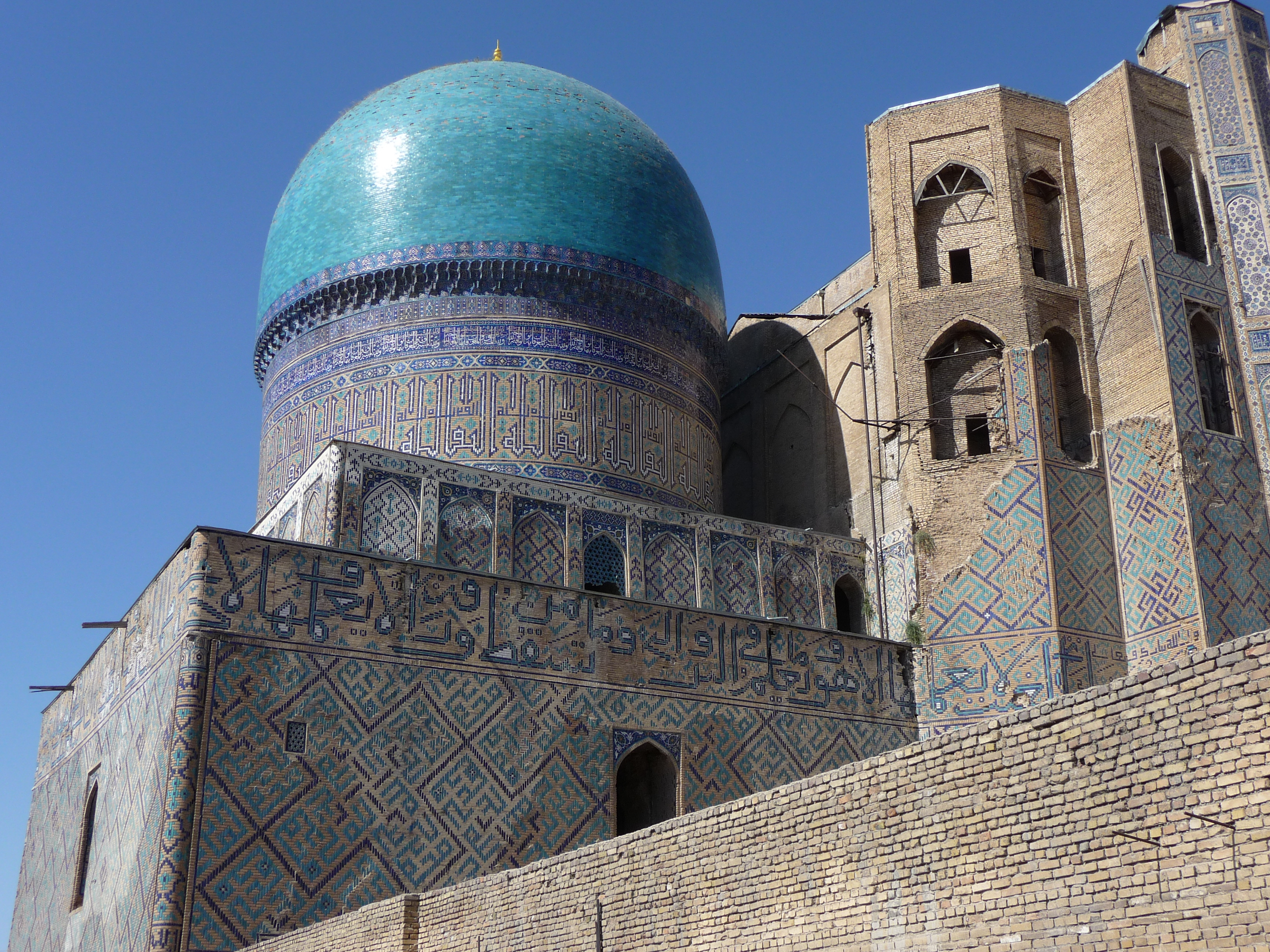 По Самарканду можно ходить часами. Вознесшиеся над городом много веков назад, дивные самаркандские купола и сегодня соперничают с небесной синевой. И не меркнут краски голубой, самаркандской глазури, покрывающей стены дворцов и мечетей даже под лучами знойного среднеазиатского солнца. Эта уникальная глазурь - тайна древних мастеров. Только в ХХ веке специалисты дознались, что в состав краски добавлялась истертая в пудру древесина редкого дерева ангоф, эндемика этих мест.