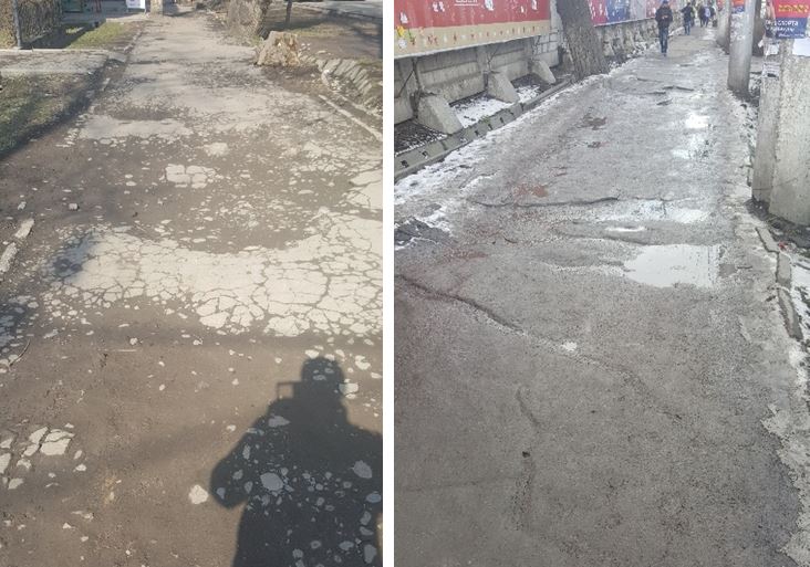 Трафик в час пик9. Тротуары Бишкека – просто жуть. Реальная. Тут за ними никто не смотрит. Зачастую они разбитые, неухоженные, грязные. Душанбе в этом отношении выигрывает однозначно.