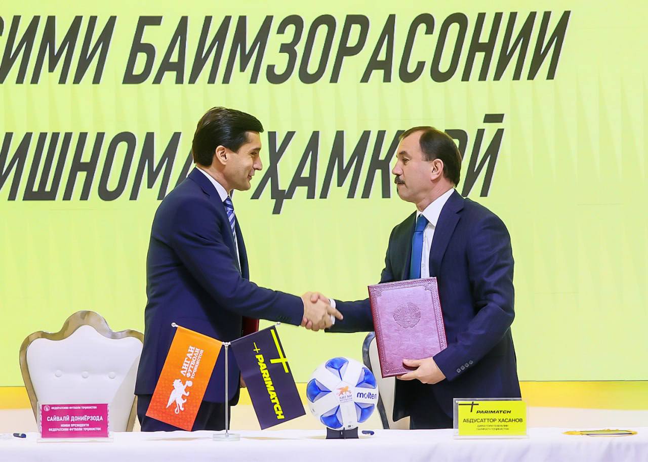 В соответствии с документом Parimatch стала титульным спонсором трех соревнований, проводимых под эгидой Футбольной лиги Таджикистана – чемпионата страны среди команд высшей лиги, Суперкубка Таджикистана и Кубка Таджикистана в сезонах 2026-2028 годов.
