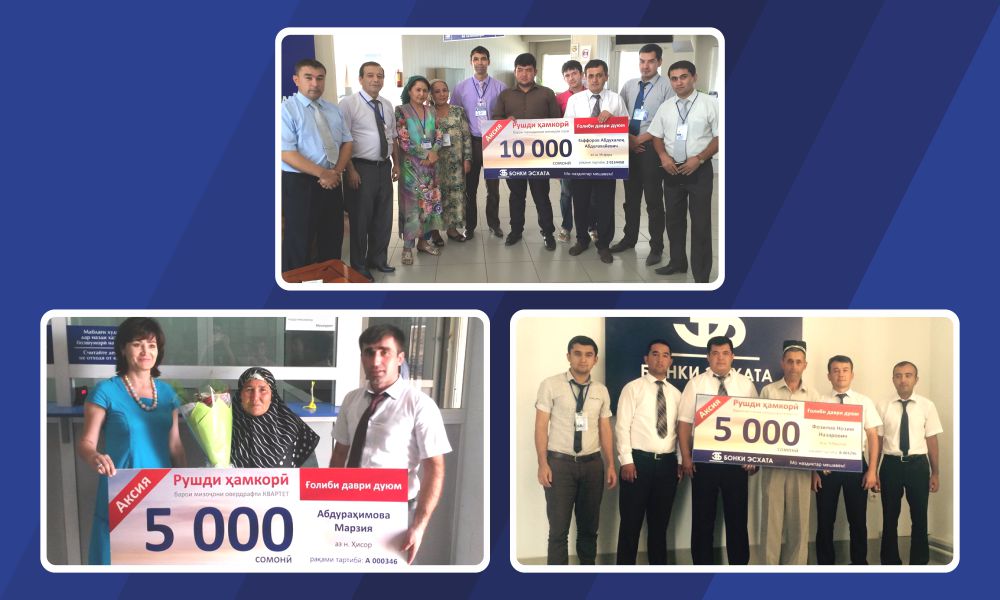 Также клиенты услуги Овердрафт «Квартета» приняв участие в акции, получили порядковые номера и в конце второго месяца Акции трое из них стали обладателями денежных призов, по 5000 сомони каждый.