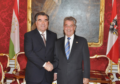 7 июня 2011 года состоялся официальный визит президента Республики Таджикистан Эмомали Рахмона в Австрийскую Республику. В ходе визита президент Республики Таджикистан Эмомали Рахмон встретился с президентом Австрийской Республики Хайнцом Фишером. На встрече стороны обсудили аспекты сотрудничества двух государств. По завершению официальной встречи в присутствии президентов двух стран было подписано Совместное коммюнике Республики Таджикистан с Австрийской Республикой по вопросу дальнейшего укрепления двусторонних отношений и Соглашение об избежание двойного налогообложения, а также Соглашение между олимпийским национальным Комитетом Республики Таджикистан и олимпийским Комитетом Австрии.