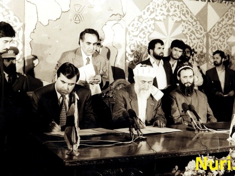 27 июня 1997 года президент Таджикистана Эмомали Рахмон и лидер ОТО Саид Абдулло Нури в Георгиевском зале Кремля в присутствии президента РФ Бориса Ельцина подписали Общее соглашение по установлению мира и национального согласия в республике.