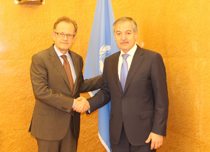В Женеве состоялась встреча министра иностранных дел Таджикистана Сироджидина Аслова с исполняющим обязанности Генерального директора швейцарского отделения ООН Майклом Меллером.