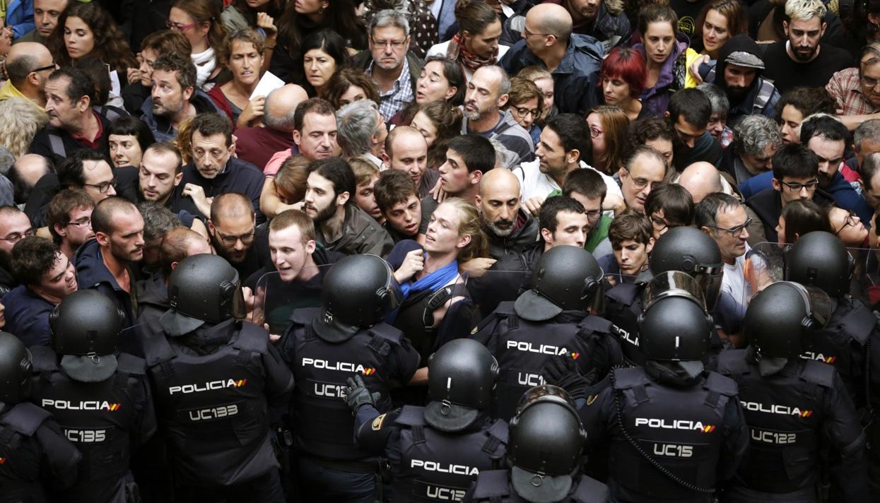 Для закрытия участков привлекли национальную полицию и гражданскую гвардию. Они прорывались в здания и конфисковывали урны и бюллетени. Против протестующих применили в том числе резиновые пули, пострадали, по предварительным данным 337 человек. Ранения также получили 9 полицейских и двое гвардейцев. МВД Испании запустило в соцсетях кампанию #EstamosporTi (исп. мы на твоей стороне). Прокуратура, в свою очередь, начала расследование действий Моссос — ведомство считает, что каталонские полицейские не исполнили распоряжение по блокировке участков и не оказывают поддержку гвардии.