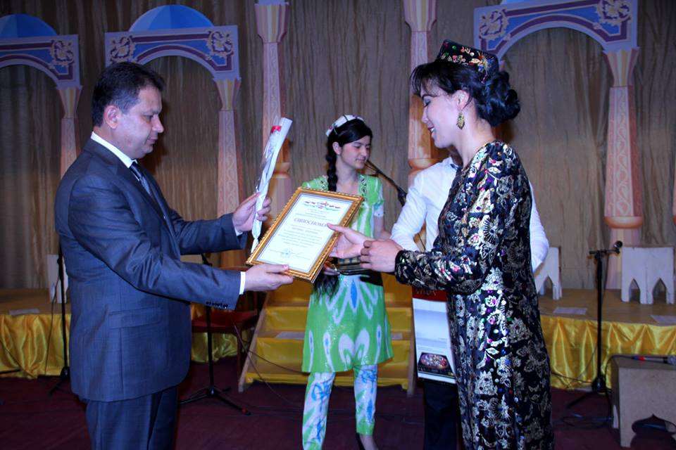 Глава города в торжественной обстановке за значительный вклад в возрождении национального искусства и развитие исполнения макома вручил группе музыкантов и исполнителей ансамбля почетные грамоты и памятные подарки. В заключение торжественного мероприятия состоялся праздничный концерт народного ансамбля «Шашмаком».