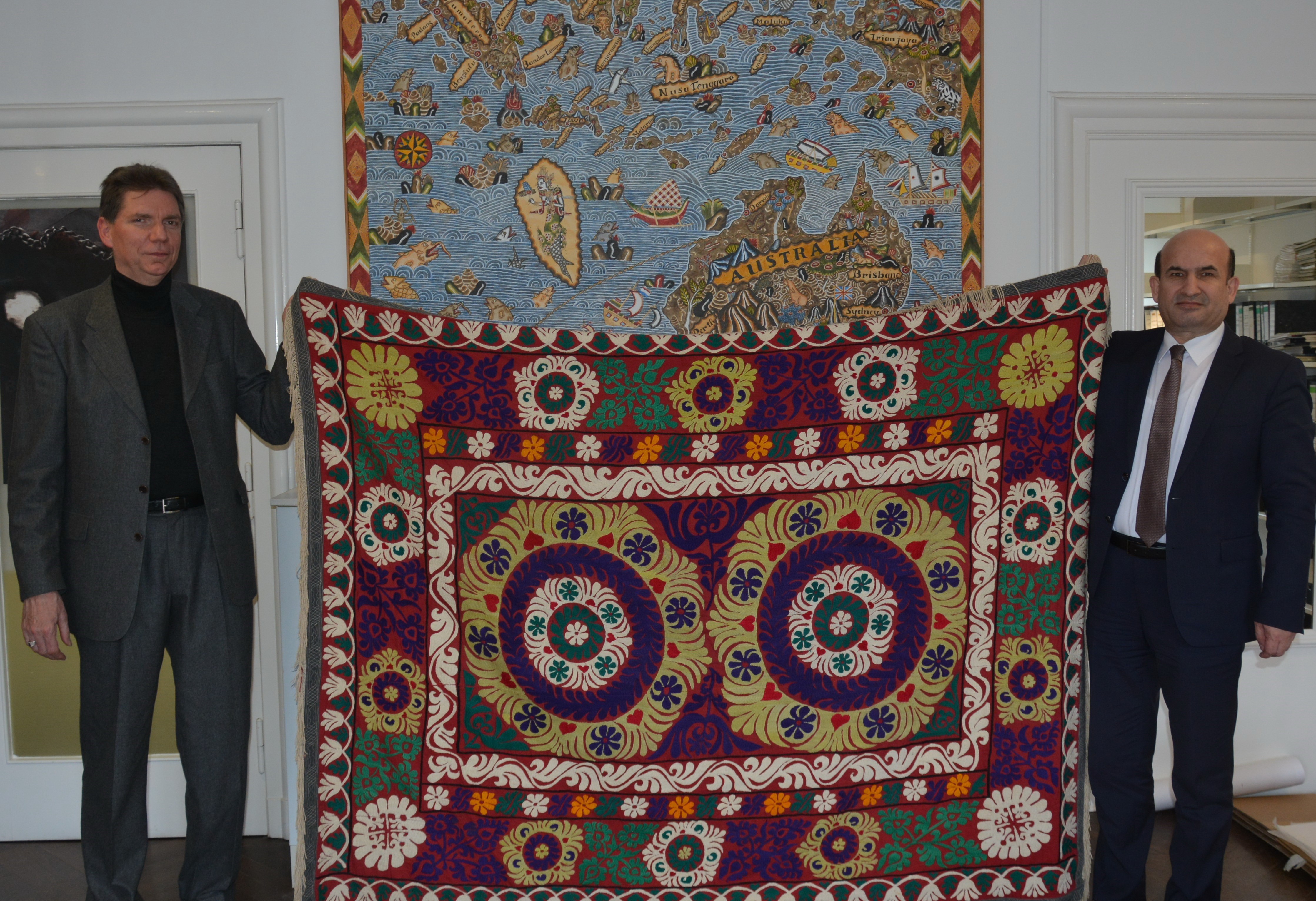 Зимнан зикр мегардад, ки дар хотимаи сӯҳбат сафир ба Осорхонаи мардумшиносии Берлин намунае аз ҳунари мардумии тоҷик – чодари чаканро тӯҳфа намуд.