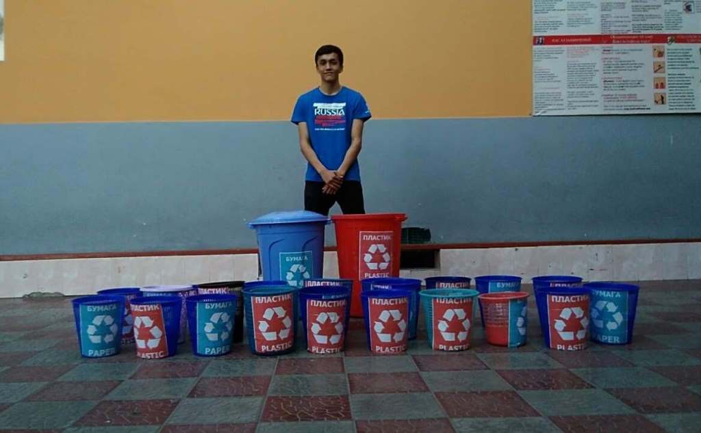 Проект «Внедрение системы управления отходами в школе путем установки мусорных баков» был реализован учащимся одной из худжандских частных школ Манучехром Насимовым. Получив поддержку от администрации школы, Манучехр установил 40 урн для утилизации отходов из пластика, бумаги и общего мусора в 20-ти классах школы, и наладил вывоз отходов в предприятия для переработки бумаги и пластика. Чтоб внедрить культуру обращения и переработки отходов, Манучехр провел презентацию для учащихся. В результате школа частично решила проблему загрязнения окружающей среды и получила дополнительное финансирование.