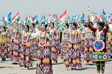 В аэропорту Худжанда его встретил Эмомали Рахмон и сотни девушек